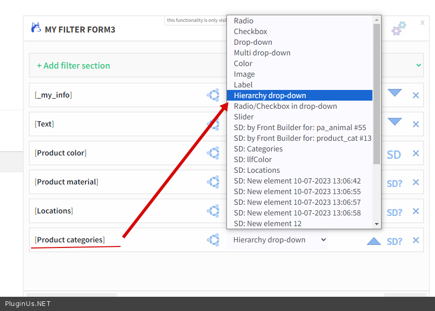 1 - I set the filter type to hierarchical dropdown - https://share.pluginus.net/image/i20231010133132.png