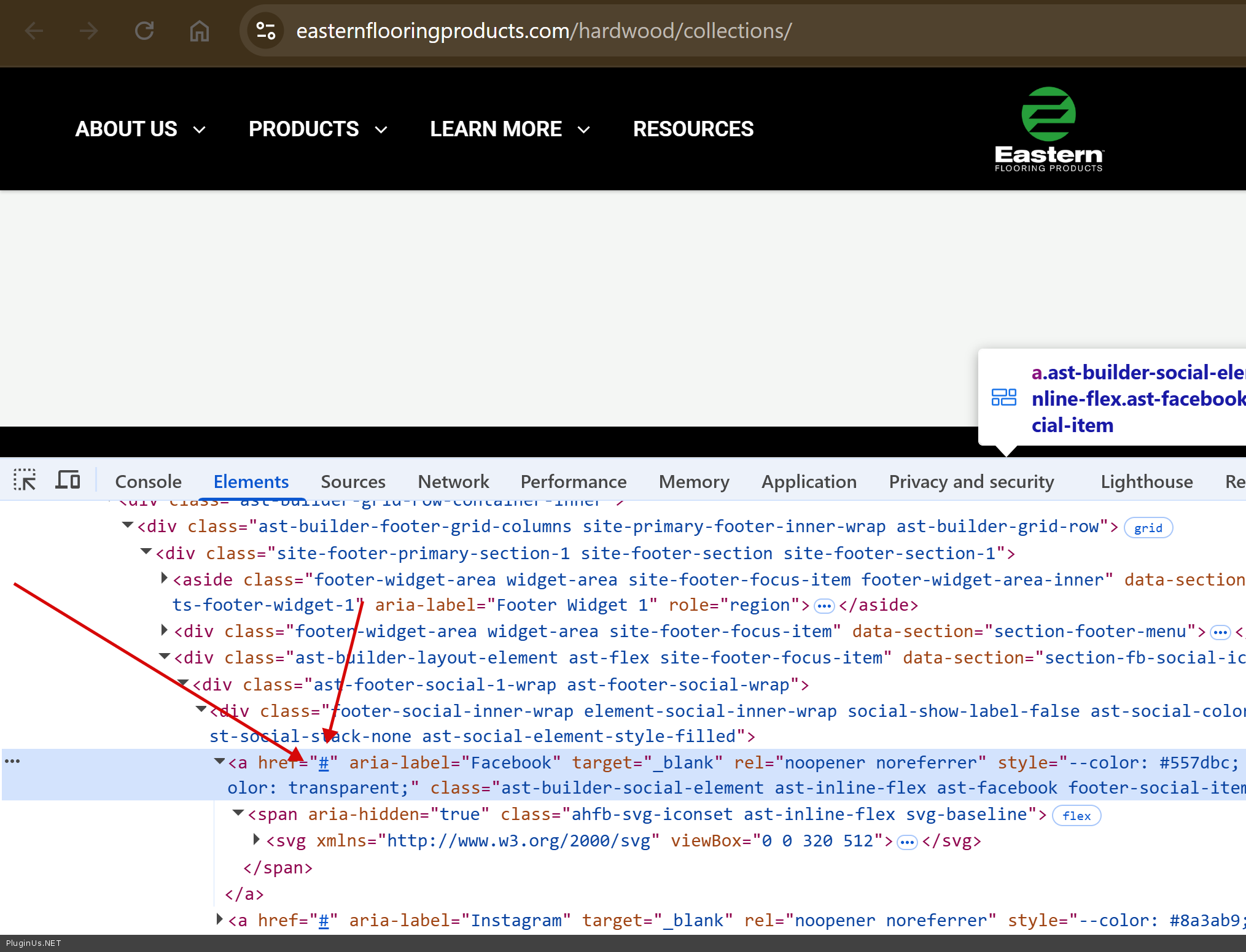 No matter what link, for example https://www.easternflooringproducts.com/hardwood/collections/ - share buttons in footer doesn work