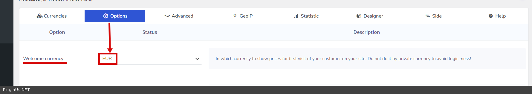 "Welcome currency" yes already put in EUR what aslo before asking you support... so always in EUR was this option for me...
