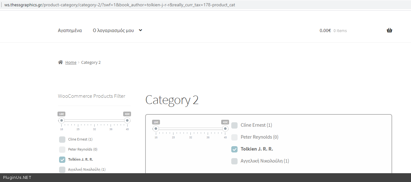Step 2 - I select a taxonomy using woof filter plugin and the breadcrumb disappeared as you can see.