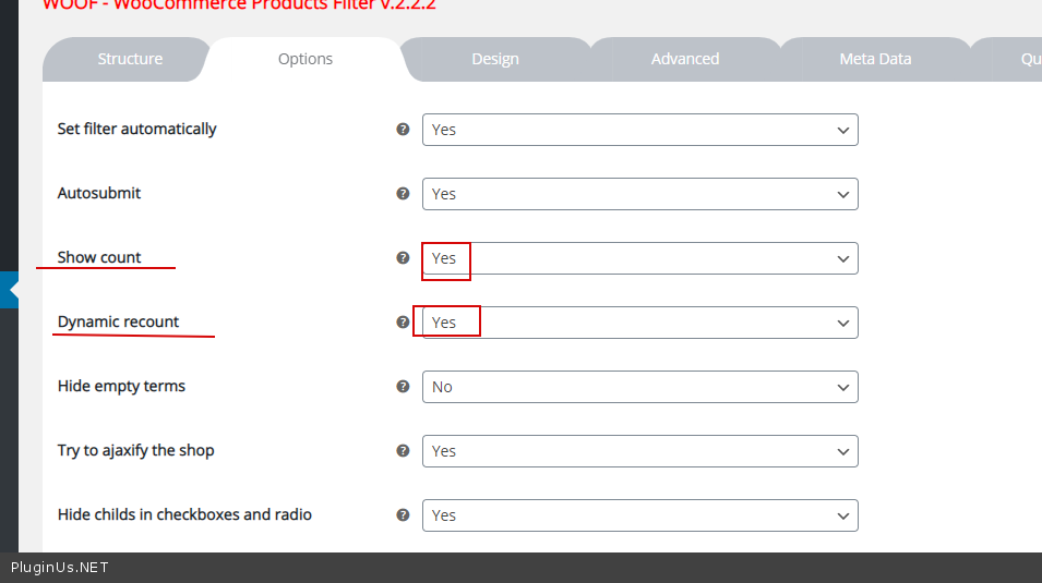 Can't set "Show Count" to No & "Dynamic Recount" to Yes at the same time.