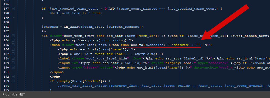 in file - \wp-content\plugins\woocommerce-products-filter\ext\label\views\woof.php - this code - https://c2n.me/4gTwAQ5.png - This code can only show"checked" or an empty string