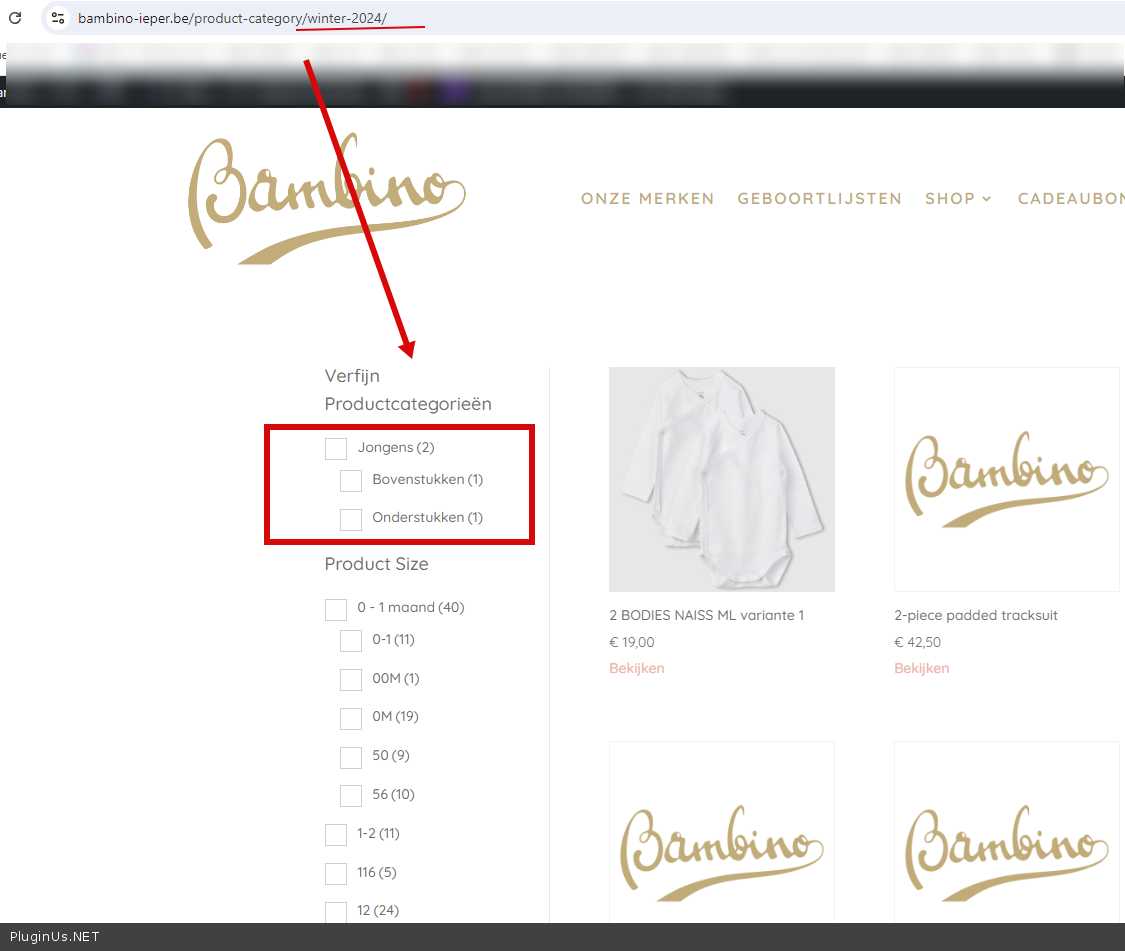I am using woof on https://bambino-ieper.be but I have some issues.