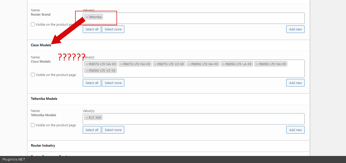 I have reviewed your page test-woof. But when selecting the brand teltonika the models of Cisco also appears... http://c2n.me/4bVCX9O
