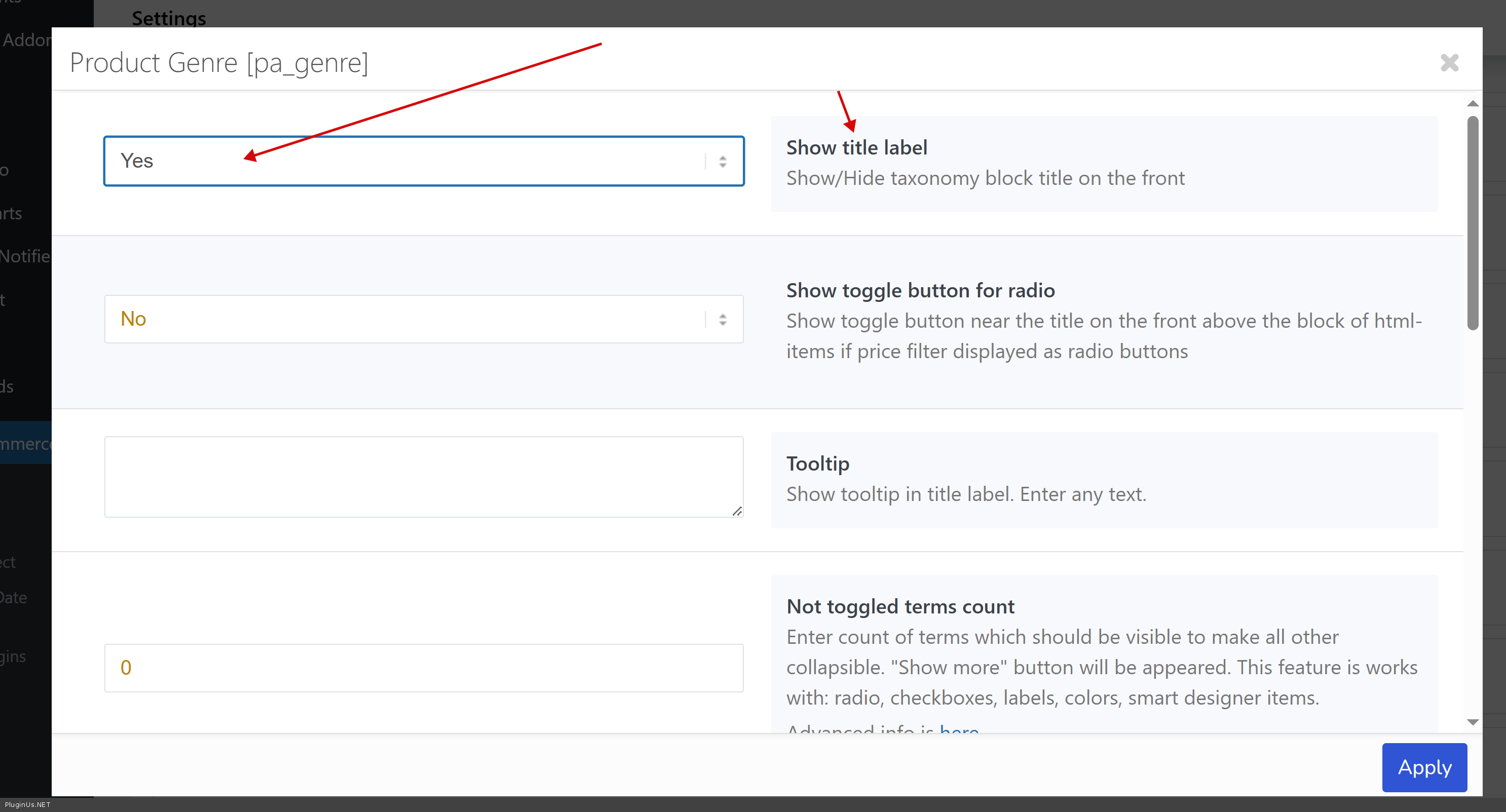 - Titles: enable it in the plugin settings where you need https://c2n.me/4nfPRiT.png . https://desideesbijoux.com/tester/ - I just did it for Produit Genre