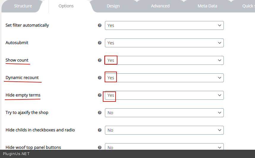 Yes, show as openedTooltipShow tooltipNot toggled terms countEnter count of terms which should be visible to make all other collapsible. "Show more" button will be appeared. This feature is works with: radio, checkboxes, labels, colors.Advanced info is hereTaxonomy custom labelFor example you want to show title of Product Categories as "My Products". Just for your convenience.Sort termsHow to sort terms inside of filter blockDefault