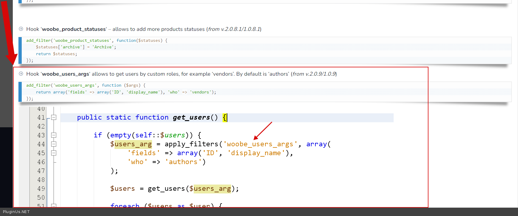 add_filter('woobe_users_args', function ($args) { return array('fields' => array('ID', 'display_name'), 'who' => 'vendors'); });