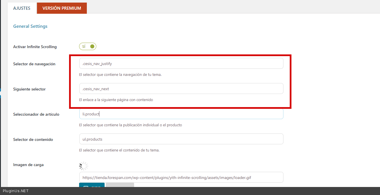 https://c2n.me/4aStnEW.png - you are using a theme with custom pagination. To properly configure the infinite scroll, contact the theme support or Yith support. This pagination will not work in ajax mode