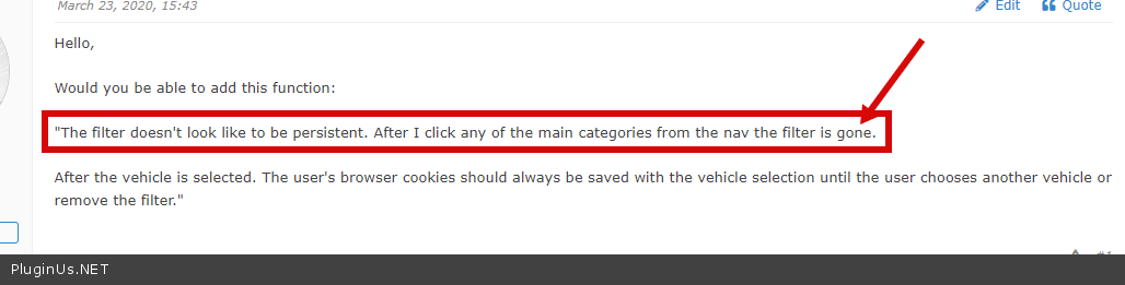 "The filter doesn't look like to be persistent. After I click any of the main categories from the nav the filter is gone.