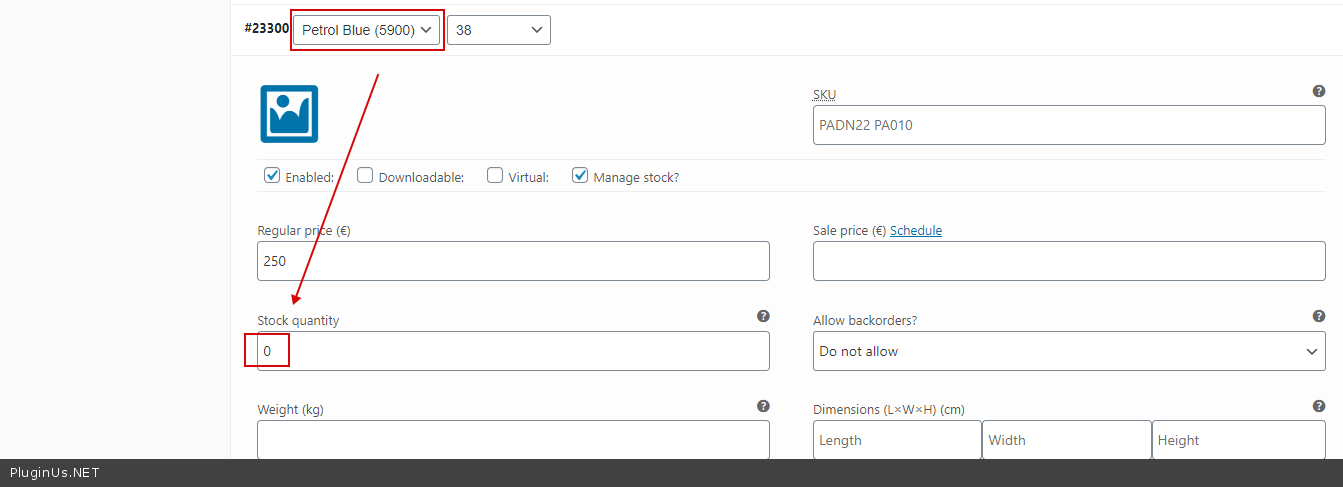 for the same product i have in stock 1 quantity of Petrol Blue (5900) & size 36 and 1 quantity of size 34 (Petrol Blue (5900))