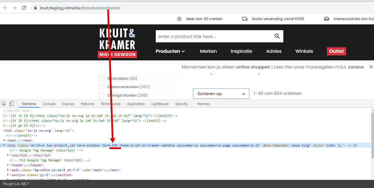 The products shown are all of the correct products. But when I look at the filterbar, it does not show the same as: https://kruit.staging.jvdmedia.nl/producten/stoelen