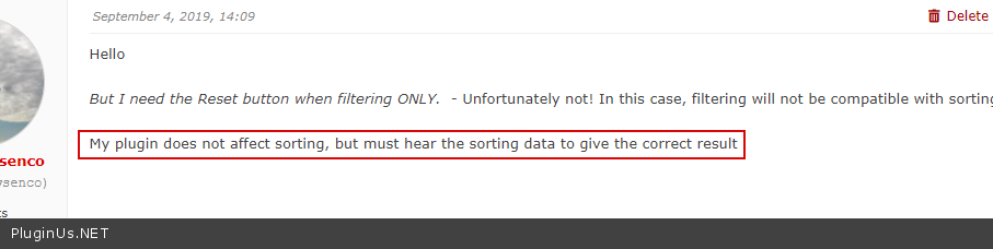 2 My plugin does not affect sorting. And it does not have a sorting function, only filtering
