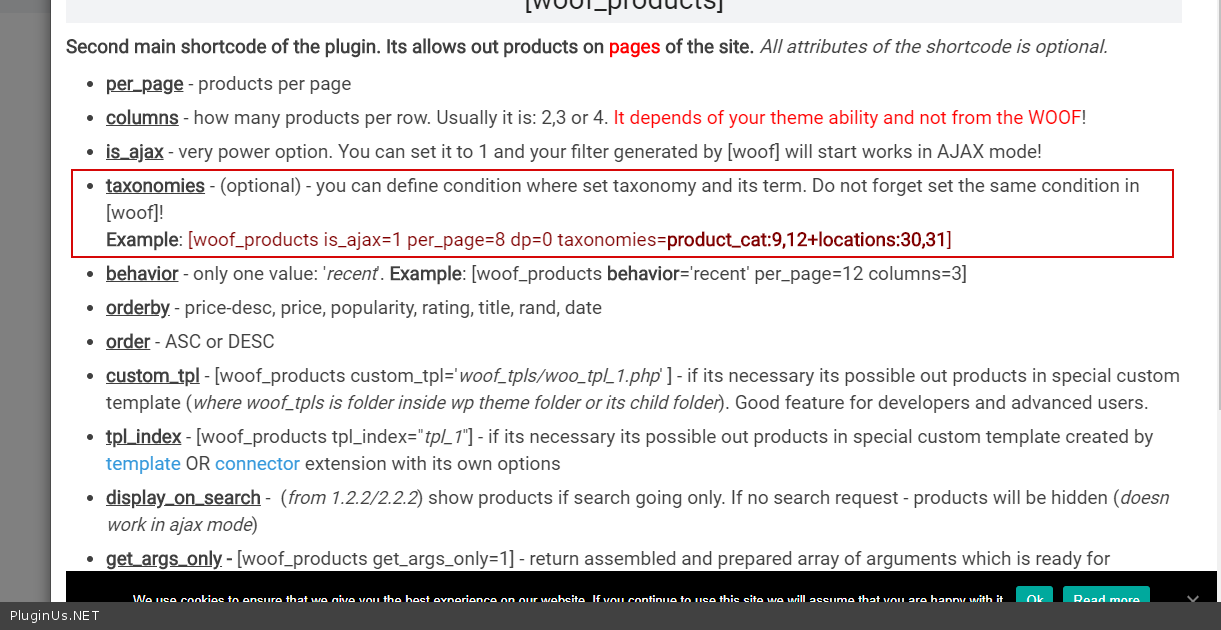'taxonomy' => 'product_cat', // The taxonomy name