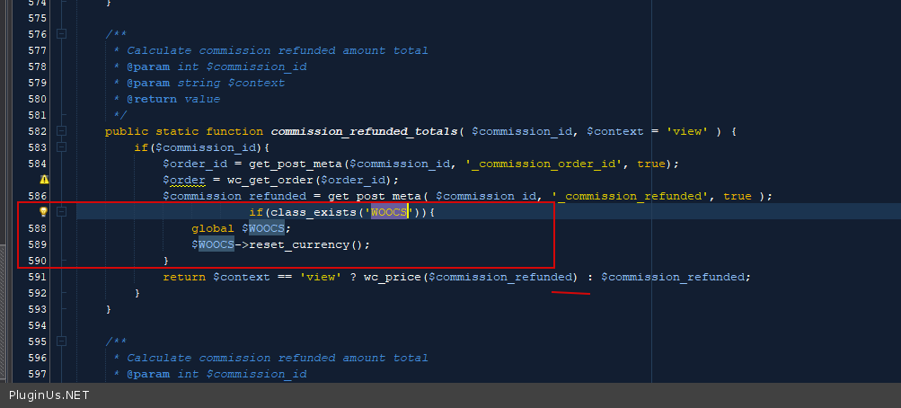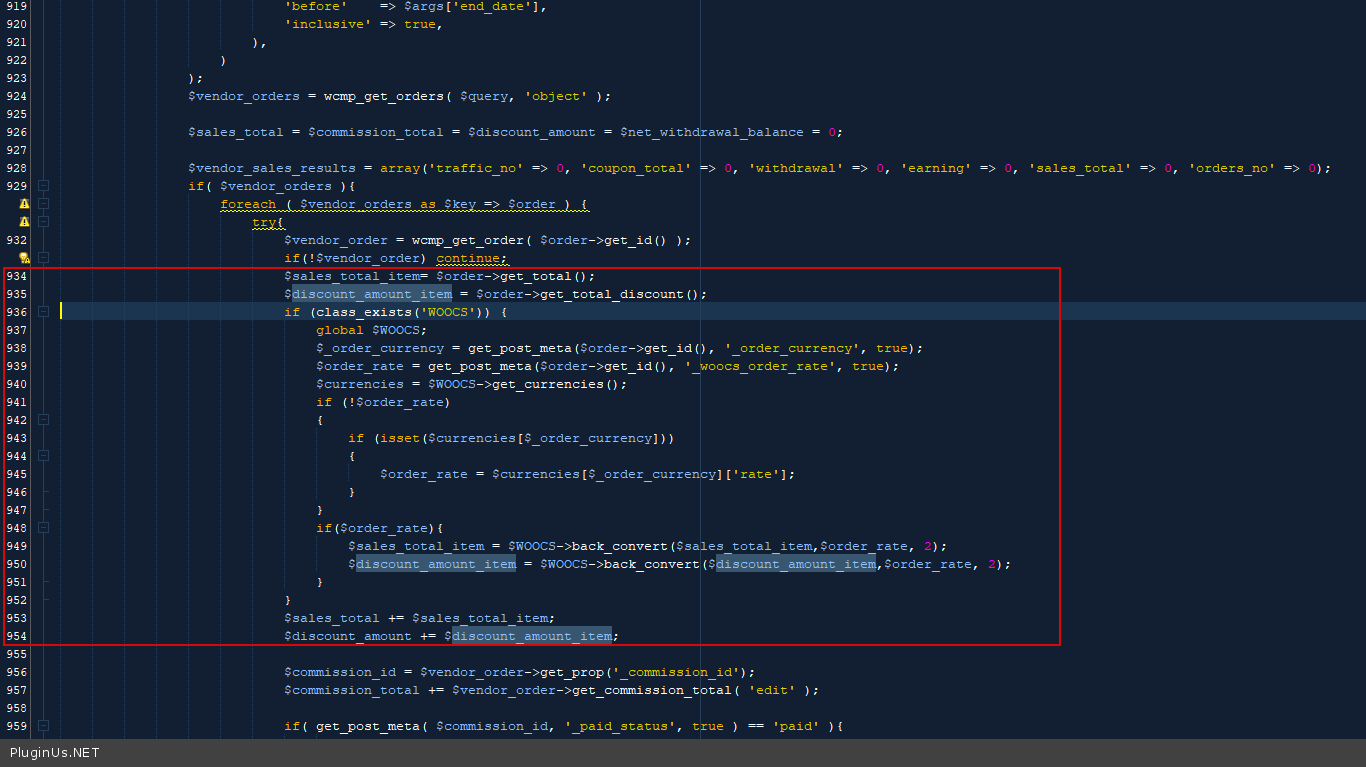 $sales_total_item = $WOOCS->back_convert($sales_total_item,$order_rate, 2);