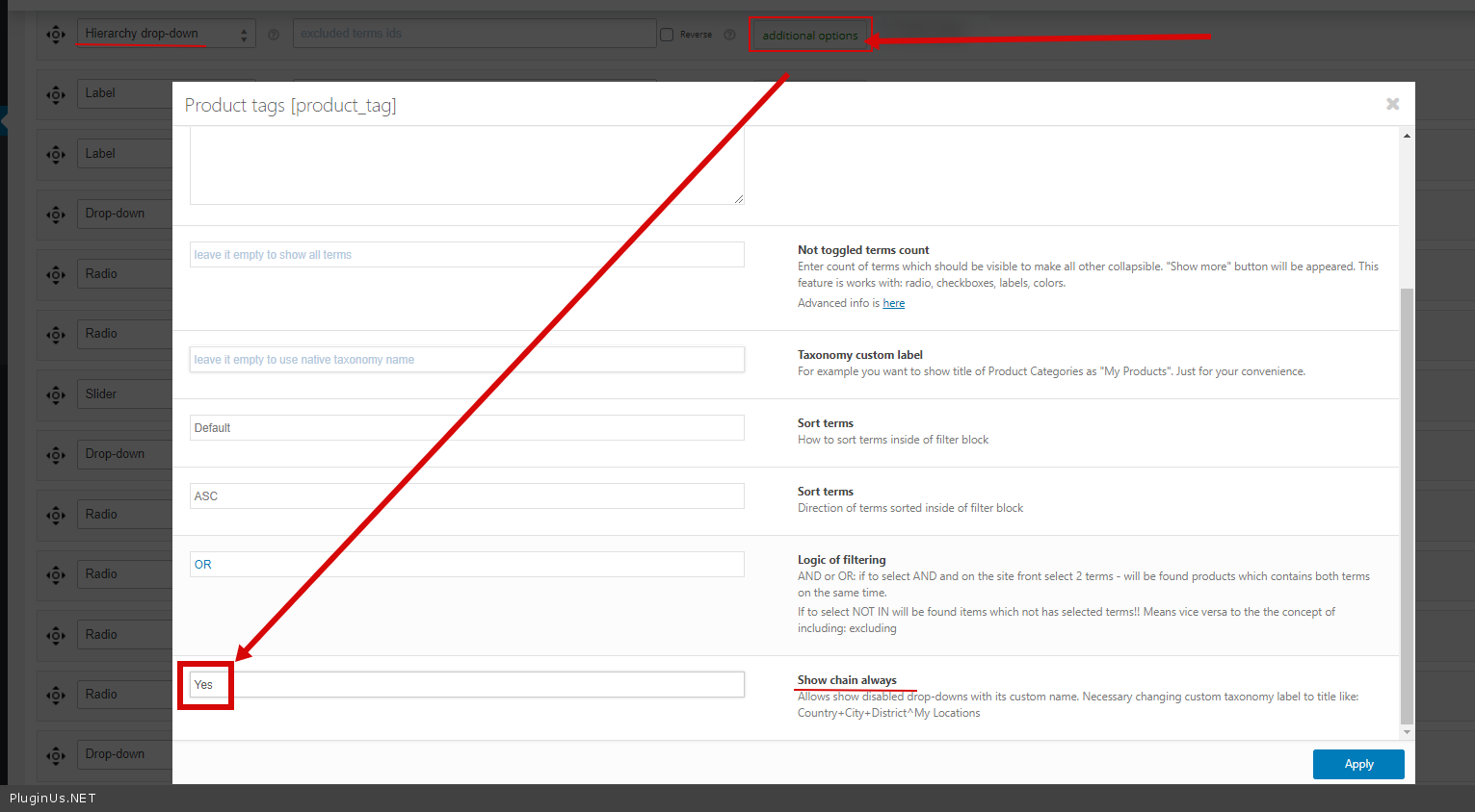 Well, I tried to setup product categories with hierarchy. However, I cannot find the "show chain always" option. May I know what settings I should do to add multiple search filters under product categories and show them in hierarchy?