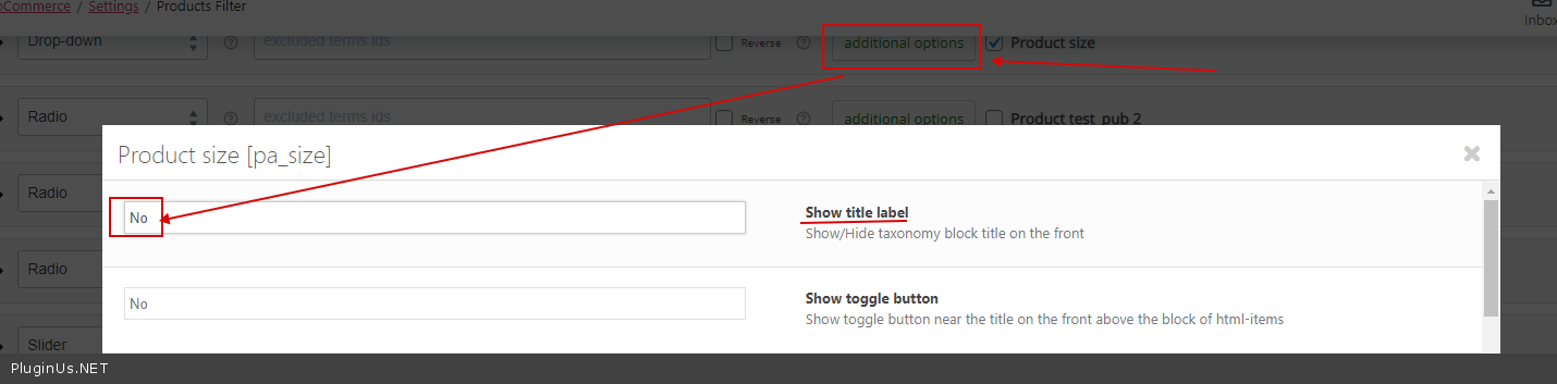 For other items you need CSS customization. Read this - https://products-filter.com/how-to-use-firebug-in-firefox-browser/