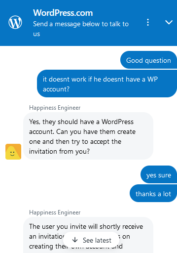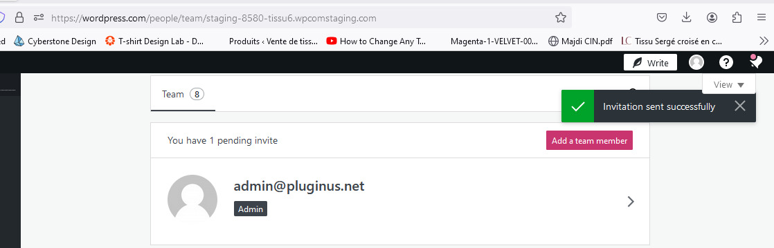 Kindly find above WP Support response. You either need to create an account with admin@pluginus.net or accept the invitation sent to you at the same address