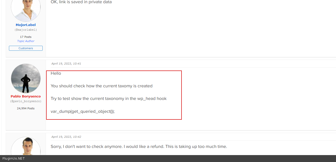 Quote from Pablo Borysenco on April 19, 2023, 11:46I didn't mean to accuse you of anything, but you told me that you're using a custom theme - https://share.pluginus.net/image/i20230419121217.png - and I think it is logical to assume if the plugin works for 200000 users and does not work on your side that the reason may be in your custom theme. And I offered help in solving this problem (regardless of the reason). But you just decided that the plugin does not work, although I also provided you with a video with the correct operation of the plugin.