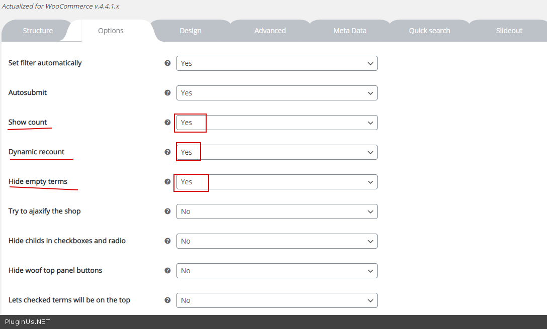 check options- https://c2n.me/496kTmt.png - if you use standard woo category pages. in this case, the plugin will show only those filters that exist for the current category