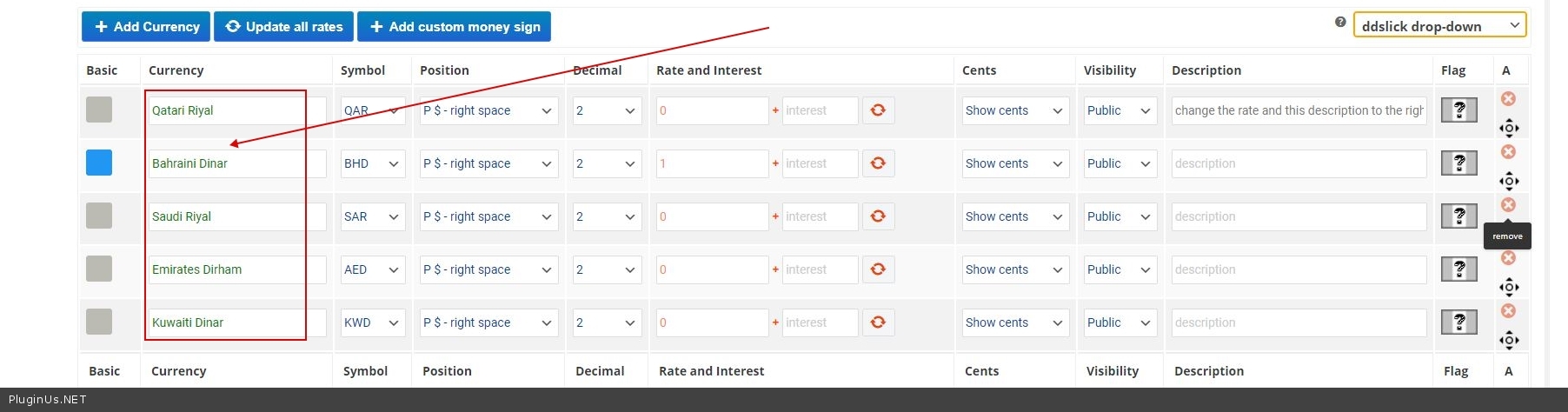 I have five currency just for display purpose but for charging to payment portal should be "BHD"