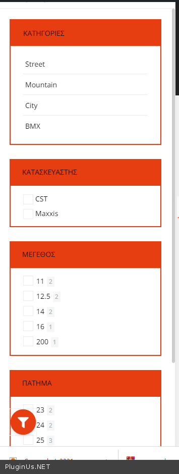 Quote from Christos on April 22, 2021, 11:57I mean the dropdowns that you can see here https://preview.deventum.com/maxxis/shop-2/ that are created from the shortcode [woof tax_only="product_cat,pwb-brand,pa_flat,pa_megethos,pa_diastaseis" autosubmit="1" ajax_redraw="0" is_ajax="1"] and are woocommerce default product attributes. you can see the floating sidebar on the page i mentioned if you press the filtre round icon on the bottom right