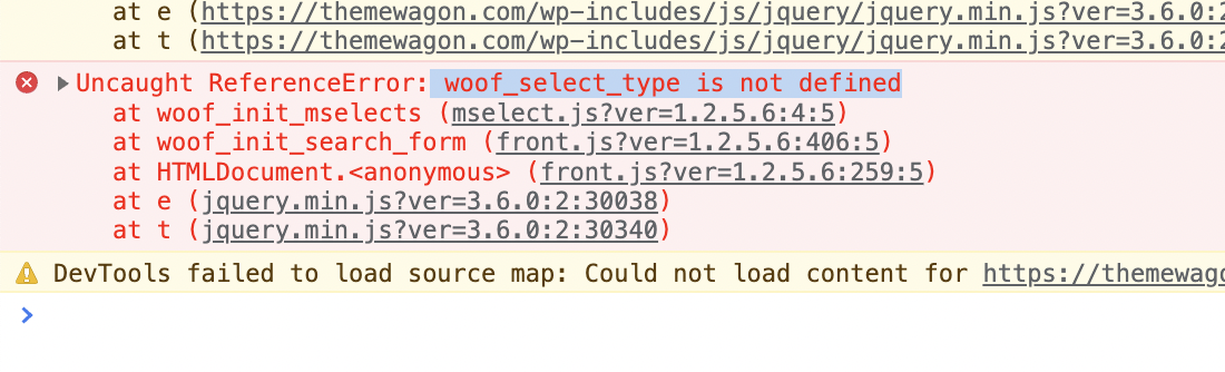 JavaScript error from Woof