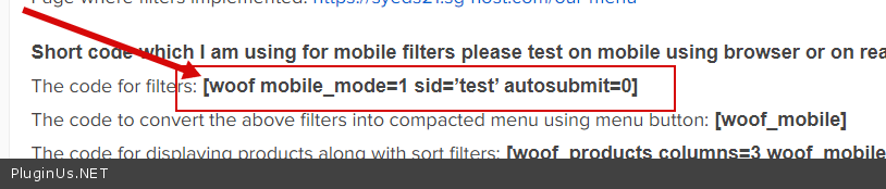 The code for filters: [woof mobile_mode=1 sid=’test’ autosubmit=0]