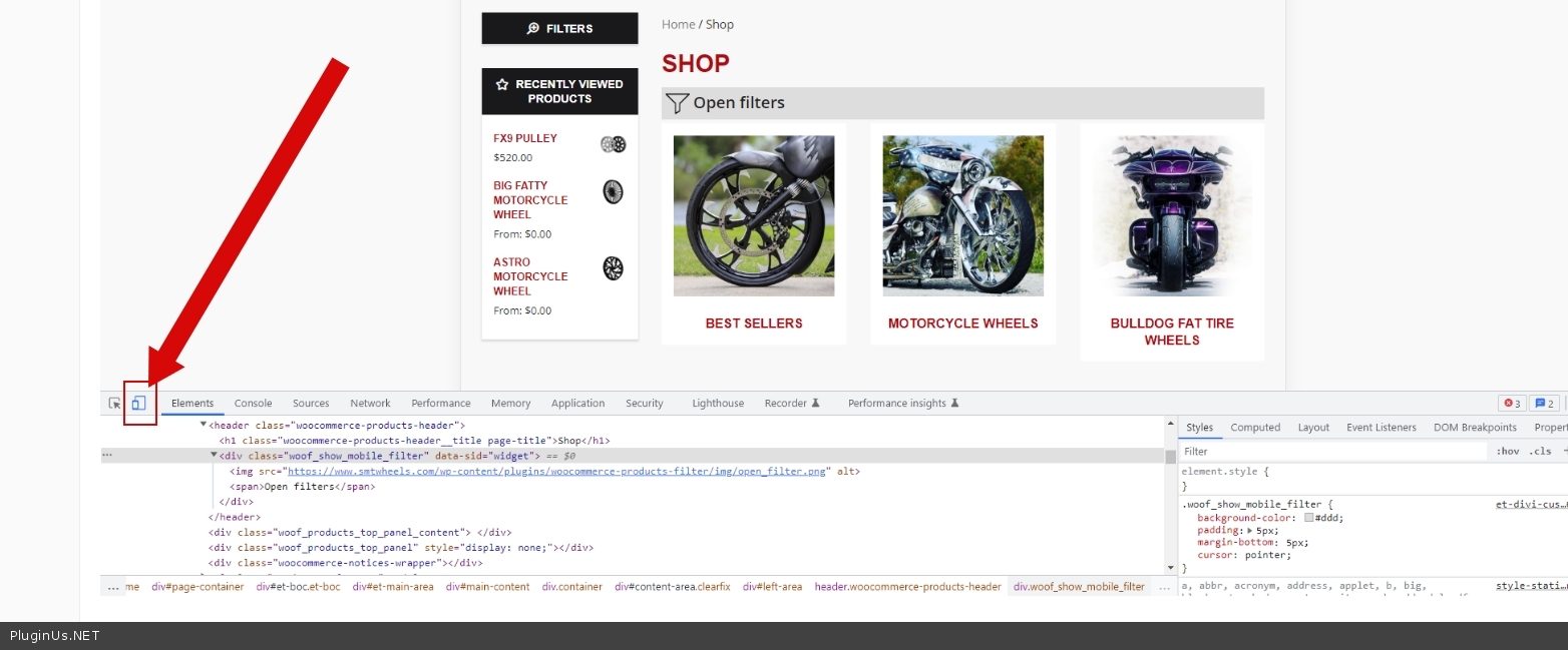 Mobile mode filter is showing on desktop