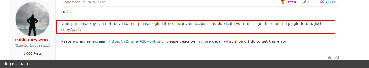 The support doesn work on Saturdays and Sundays, so some Friday requests can be answered on Monday. If you have problems with registration ask help on contact us page pleaseIf you not got email within 24~36 business hours, firstly check your spam box, and if no any email from the support there - back to the forum and read answer here. DO NOT ANSWER ON EMAILS [noreply@pluginus.net] FROM THE FORUM!! Emails are just for your info, all answers should be published only here.