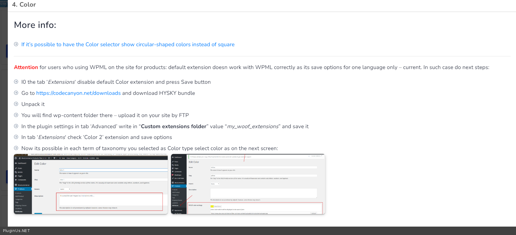 Regarding colors in another language - this only works with WPML ( https://c2n.me/4kmqT7c.png ) - https://products-filter.com/extencion/color