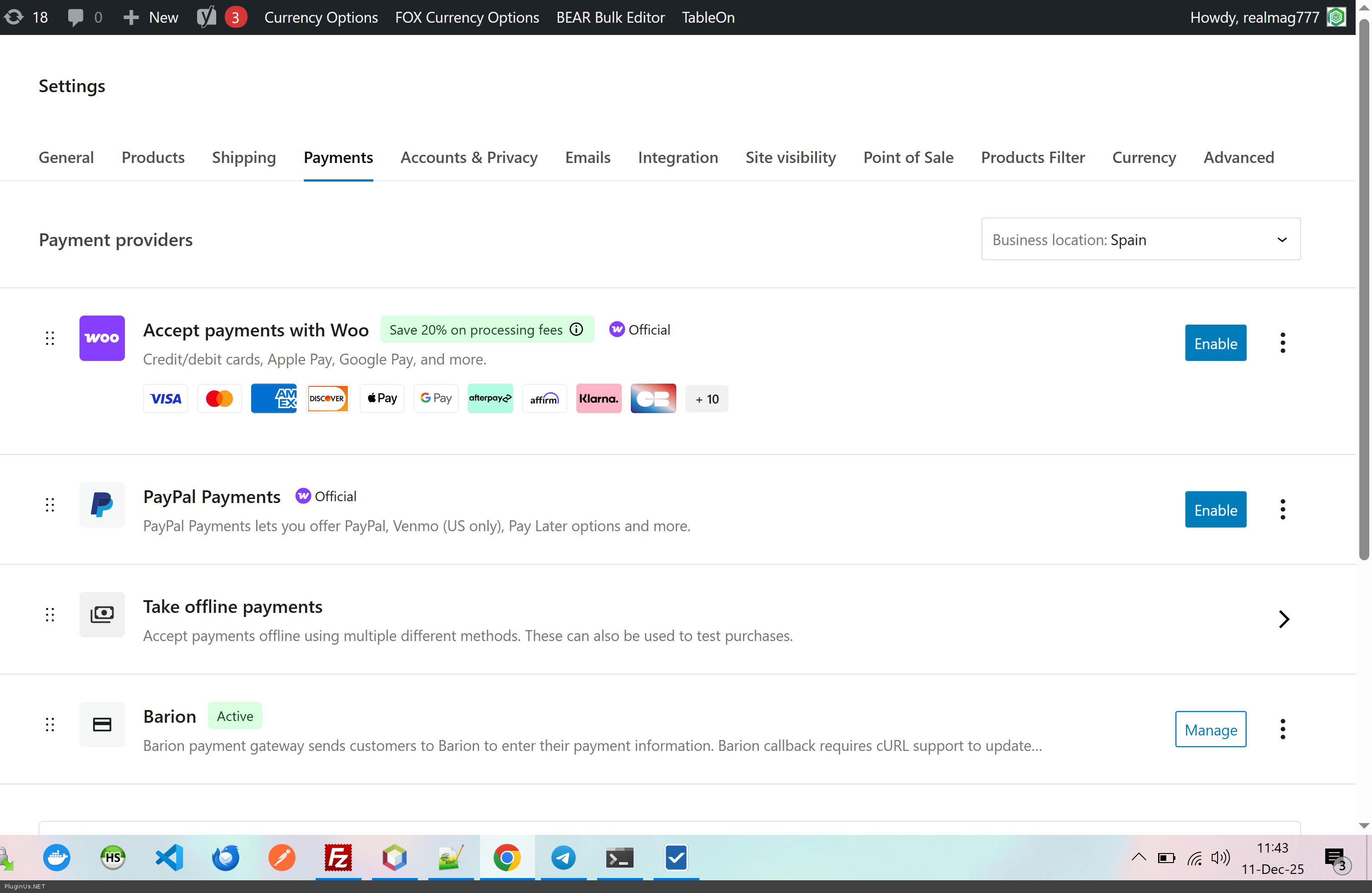 The error I noticed: If the FOX plugin is not enabled, I can activate the Barion plugin on the Woocommerce/Payment page with the Enable button (the gray Inactive label changes to green Active).