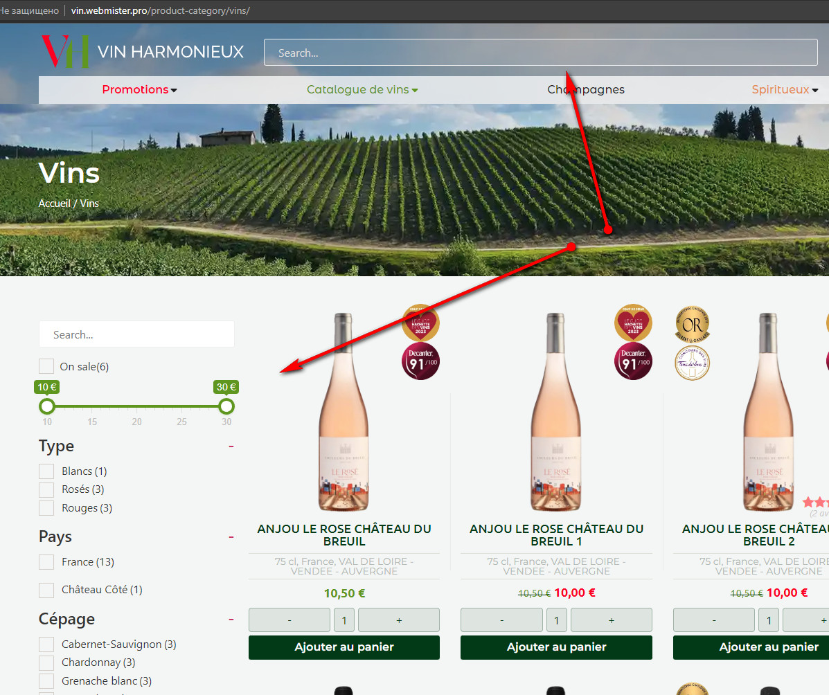 For example: on the above page, select Pays = France and he will transfer to the store page and there will also be wines, although they were not in the alcohol category.