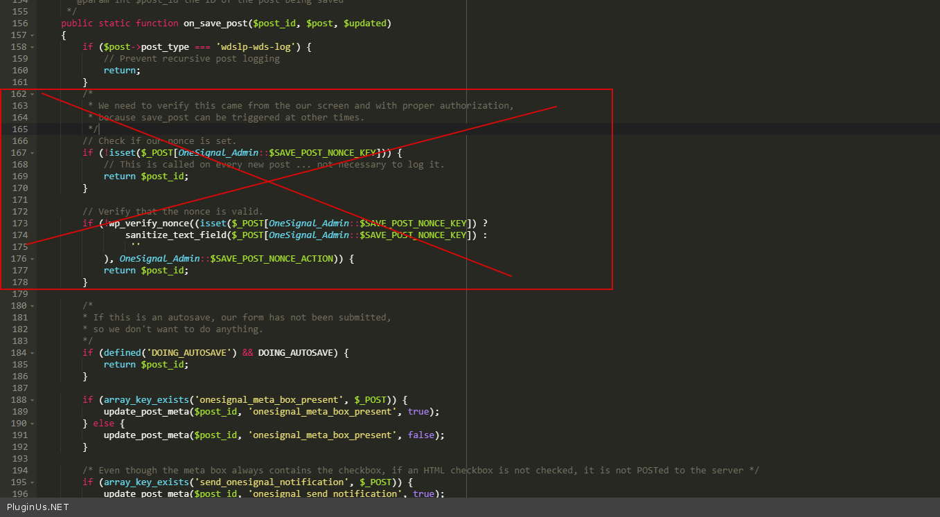 Try in file - wp-content/plugins/onesignal-free-web-push-notifications/onesignal-admin.php - delete this code - https://c2n.me/470Out7.png and do test please