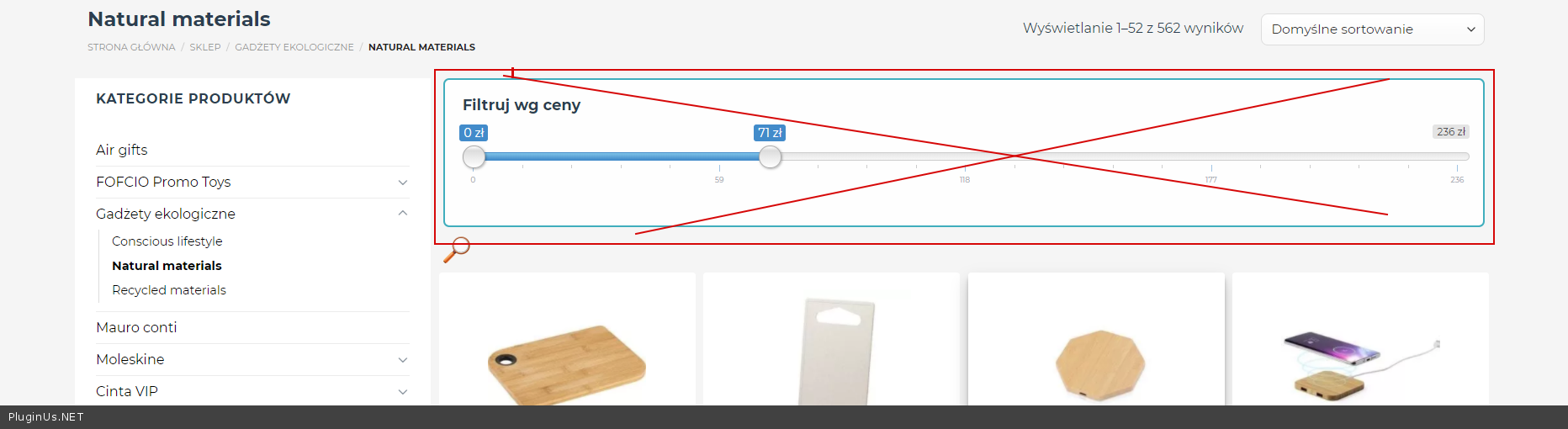 Пример стр. категории где устан. фильтр - https://cintagadzet.pl/product-category/gadzety-ekologiczne/