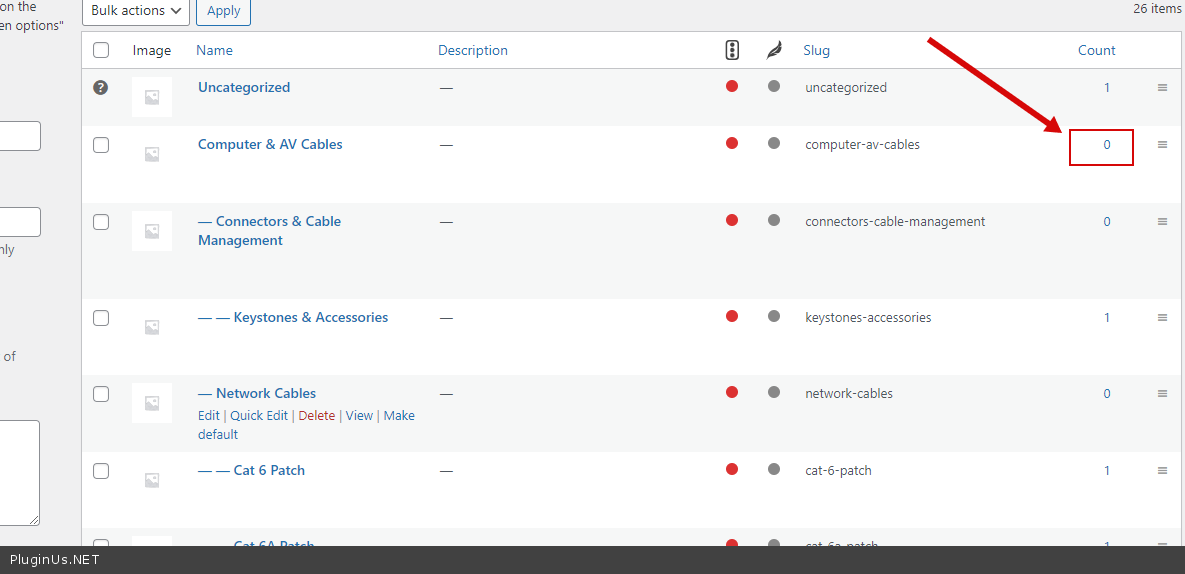 Computer & AV Cables 4 (MAIN Category)Connectors & Cable Management 1 (Sub)Network Cables 3 (Sub)If you click on the checkbox for Computer & AV Cables 4, the filter will load and bring out No product. And once it loads, there won't be subcategories showing under the Computer & AV Cables checkbox.How can I resolve this, It should be like this - if you click the main category, and the filter loads, the new page should review the 4 products in that category. And at the sidebar widget - the filter will be collapsed and reveal the subcategories showing the count.