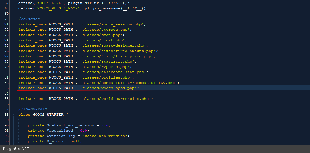 I tried to comment line 83 in wp-content/plugins/woocommerce-currency-switcher/index.php and the result is that the plugin cannot be activated due to the following fatal error: