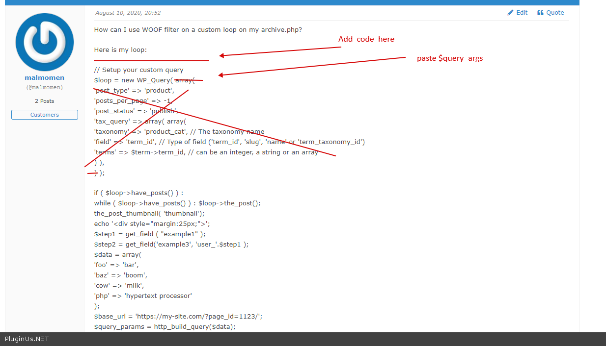 Quote from malmomen on August 11, 2020, 18:01Thank you. I'm new-ish to Wordpress, can you explain to me where to put this? I added your code above my loop on archive.php, and tried to use sidebar Woof Filter on archive.php, but it did not filter the products when I tested.