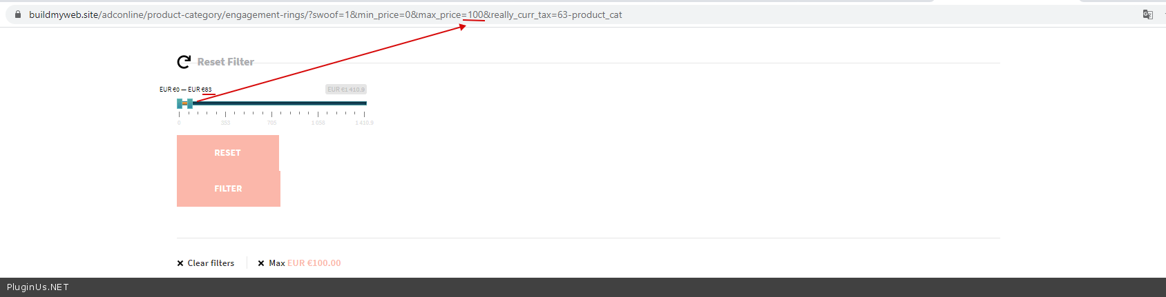 Please use standard woo price filter OR this filter - https://wordpress.org/plugins/woocommerce-products-filter/