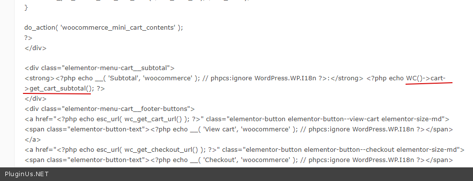 <strong><?php echo __( 'Subtotal', 'woocommerce' ); // phpcs:ignore WordPress.WP.I18n ?>:</strong> <?php echo WC()->cart->get_cart_subtotal(); ?>
