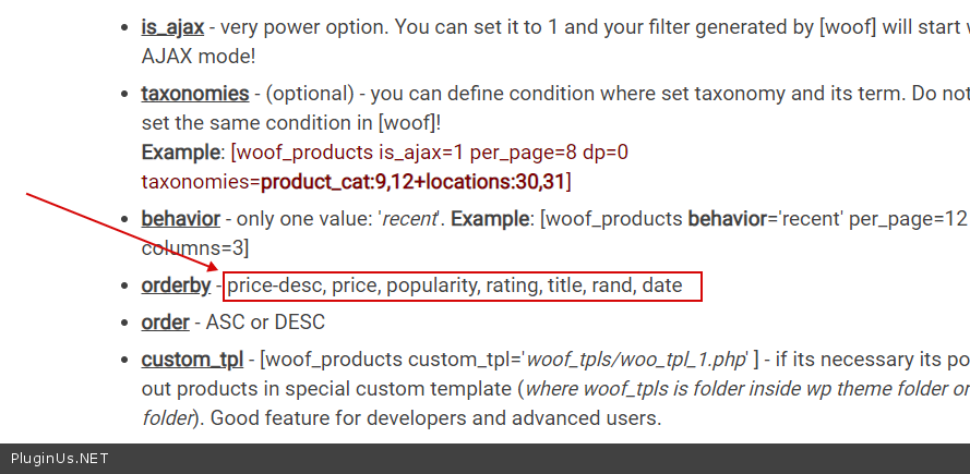 We've been looking at the shortcode page with the "orderby" parameter : https://products-filter.com/shortcode/woof_products/