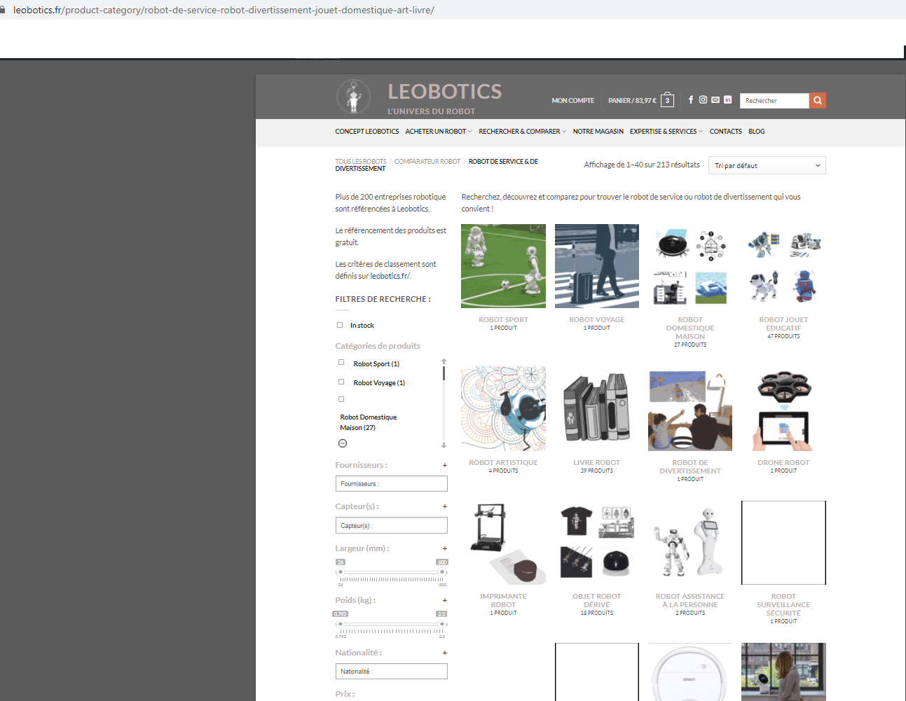 https://www.leobotics.fr/product-category/robot-de-service-robot-divissements-jouet-domestique-art-livre/Here, all the folders and their images are visible, then the products are visible.