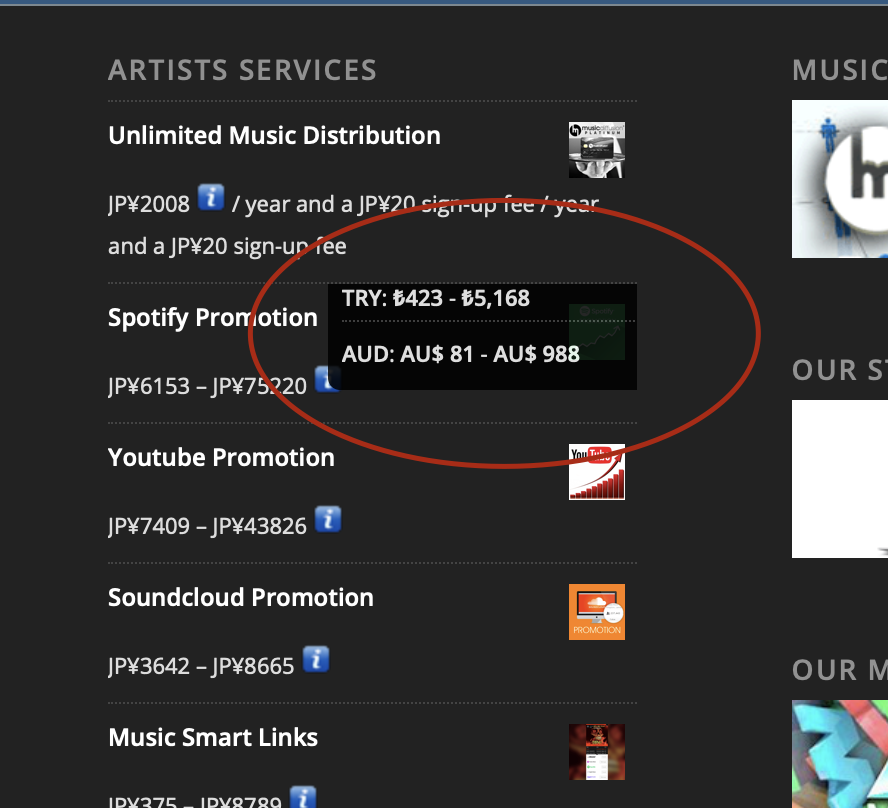 You will also see that the setup fee will remain 20 whatever currency you choose. This is also present on the widget on the bottom of all my pages.