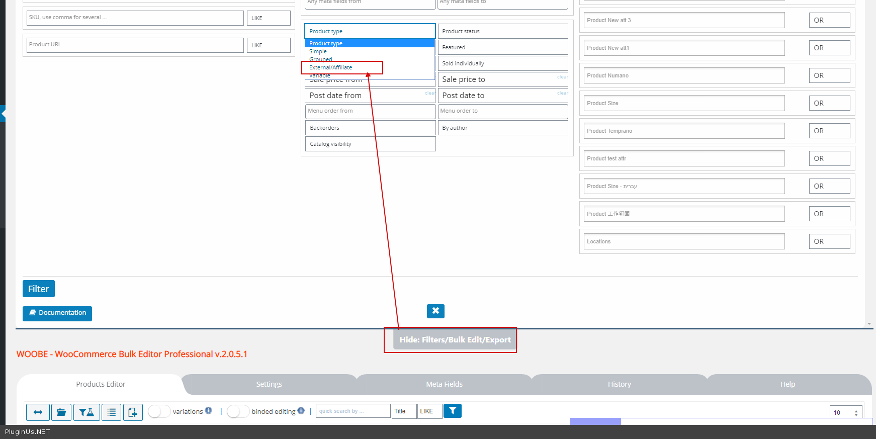 2. Also, I don't find the option to select/choose the"product type". We need to select a custom product type from a theme (externe/affiliation). I guess if not possible by default it would be possible to do it with the meta field option. If you could give us help on this as well would be great.