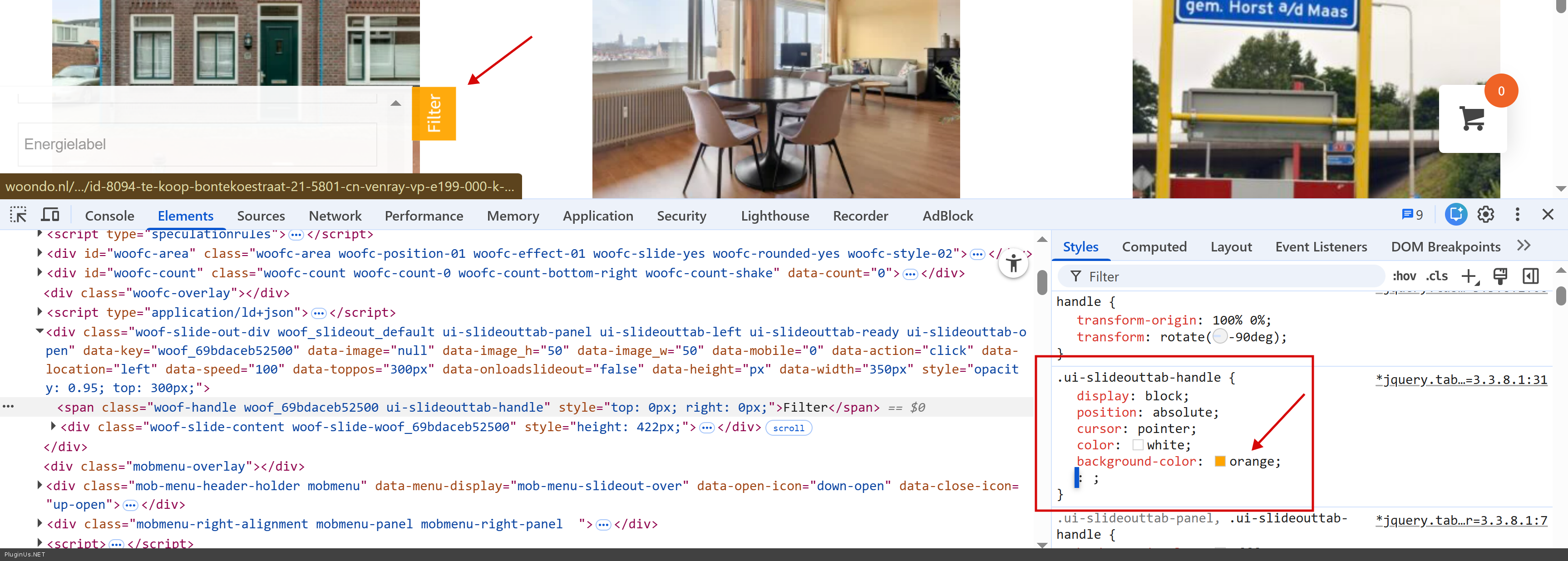 functions.phpor via a plugin like "Code Snippets" can replace the icon with text:jQuery(document).ready(function($) { $('.woof_toggle_button').html('Vind Profielen'); });A screenshot+link would help confirm which approach fits your setup.