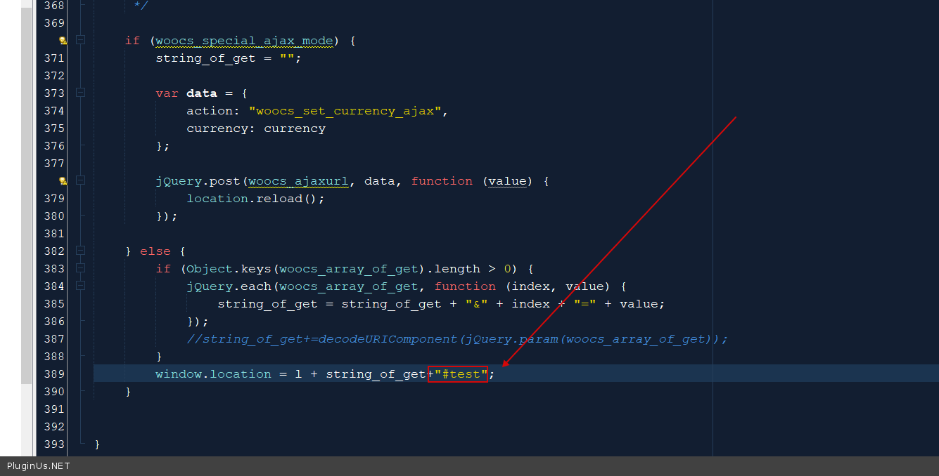 Try in file - \wp-content\plugins\woocommerce-currency-switcher\js\front.js add your anchor here - https://c2n.me/44WmYHa.png