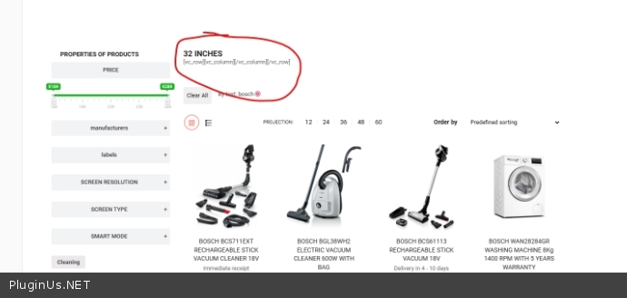 On this second screenshot the filters shown are not compatible with the list of products show in results. There no way a bosch return result can have screen inches.