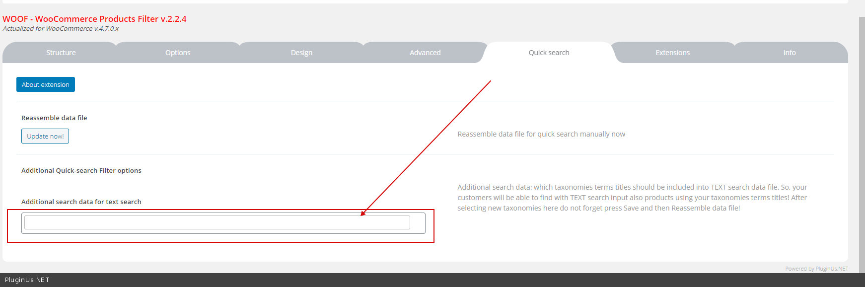 Please try to watch a video - https://products-filter.com/video-tutorials#video_beGT6p_look - you will see how to work with extensions