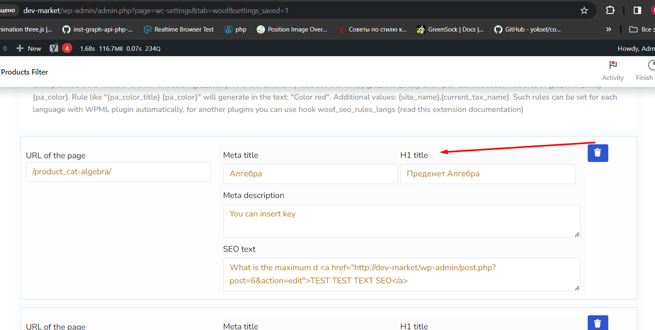 1. Will it be possible to enter the SEO text tag in the SEO text field