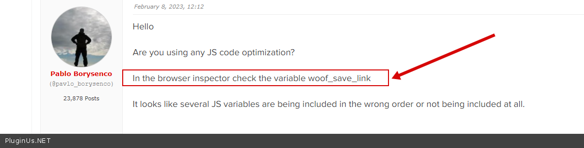 In the browser inspector check the variable woof_save_link