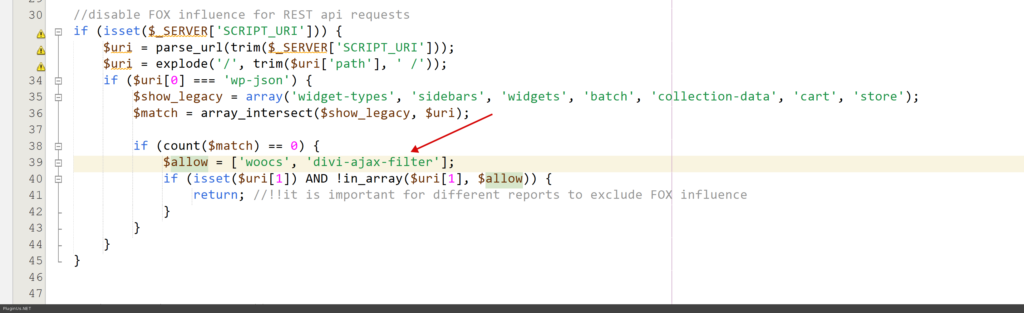 Quote from davidreca on January 15, 2026, 16:50Hi, we've managed to avoid the error we were having; however, there's a slight delay (the price appears in dollars for a fraction of a second and then switches to pesos) due to the JavaScript code and the implementation I have to do. This occurs because FoxPro automatically disables itself for REST API requests (lines 30-45 in index.php). The BodyCommerce team asked me if it was possible to add `divi-ajax-filter` to the `$allow` array so that FoxPro processes our REST endpoints natively. This would eliminate the need for the secondary API call and prevent the currency conversion delay you can see here: